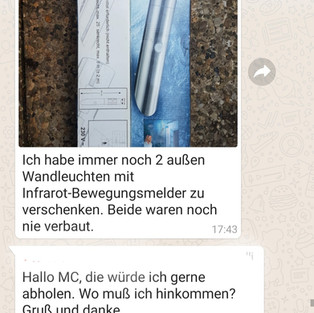Ich persönlich möchte vorschlagen, dass Fragen zum Produkt und die Kommunikation, wann und wo die Dinge übergeben werden, direkt mit den Beteiligten ausgemacht werden. Das bedeutet konkret, habt ihr Interesse an z.B. einem angebotenen Rasenmäher whatsappt ihr direkt mit dem Anbieter weiter und nicht mehr über die "Über die Pforte" Gruppe. Sobald die Übergabe abgeschlossen ist, wird das Angebot aus der Gruppe gelöscht. So könnten wir eine Flut von Nachrichten vermeiden, die möglicherweise nur einige Wenige interessieren.
